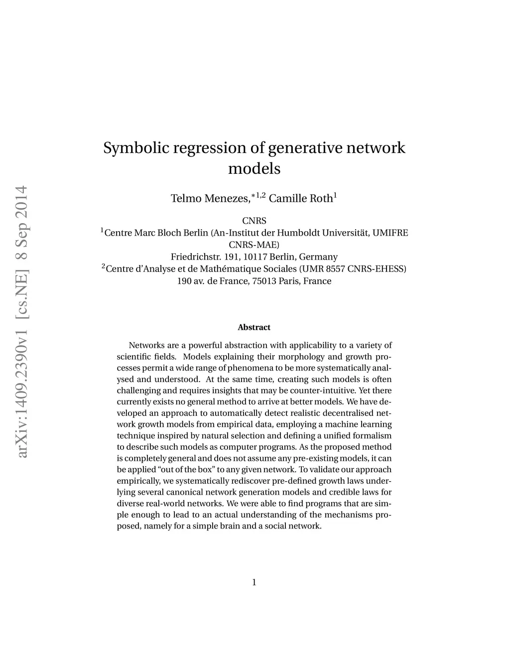 Networks are a powerful abstraction with applicability to a variety of scientific fields. Models explaining their morphology and growth processes permit a wide range of phenomena to be more systematically analysed and understood. At the same time, creating such models is often challenging and requires insights that may be counter-intuitive. Yet there currently exists no general method to arrive at better models. We have developed an approach to automatically detect realistic decentralised network growth models from empirical data, employing a machine learning technique inspired by natural selection and defining a unified formalism to describe such models as computer programs. As the proposed method is completely general and does not assume any pre-existing models, it can be applied "out of the box" to any given network. To validate our approach empirically, we systematically rediscover pre-defined growth laws underlying several canonical network generation models and credible laws for diverse real-world networks. We were able to find programs that are simple enough to lead to an actual understanding of the mechanisms proposed, namely for a simple brain and a social network.