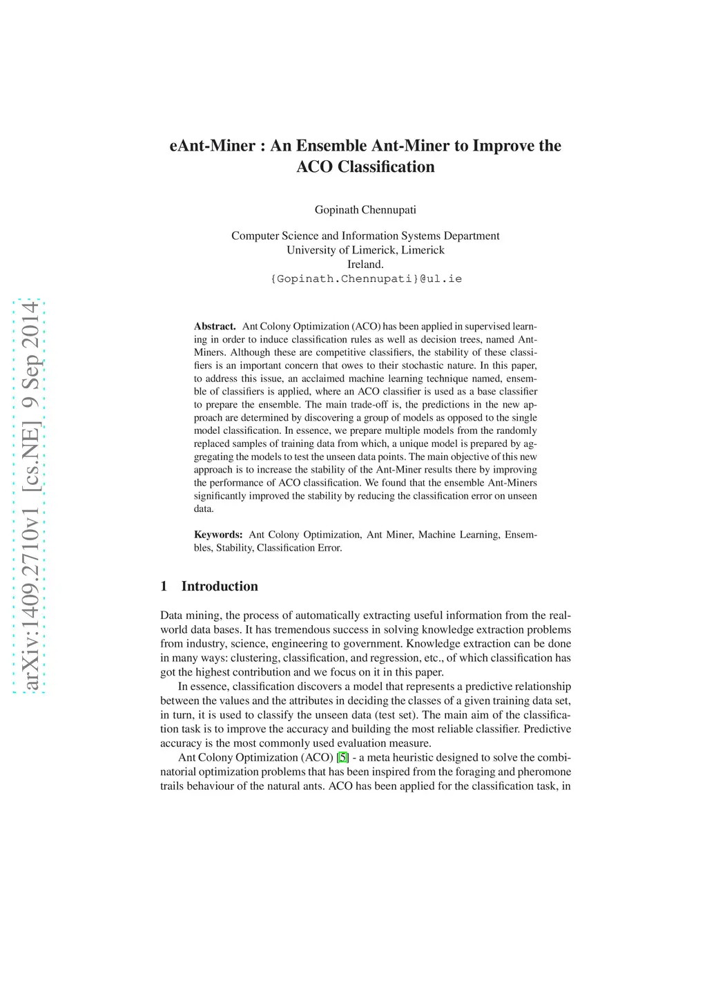 eAnt-Miner : An Ensemble Ant-Miner to Improve the ACO Classification