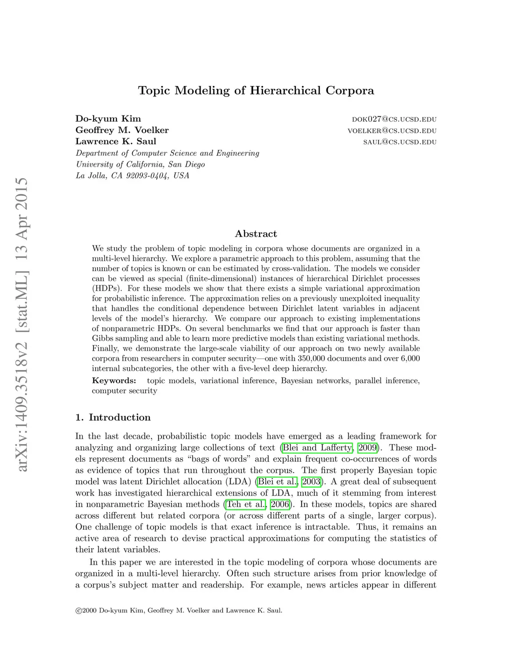 Topic Modeling of Hierarchical Corpora
