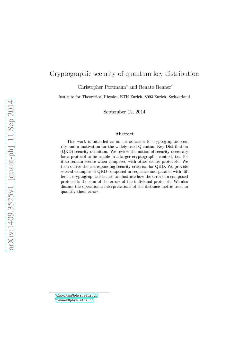 Cryptographic security of quantum key distribution