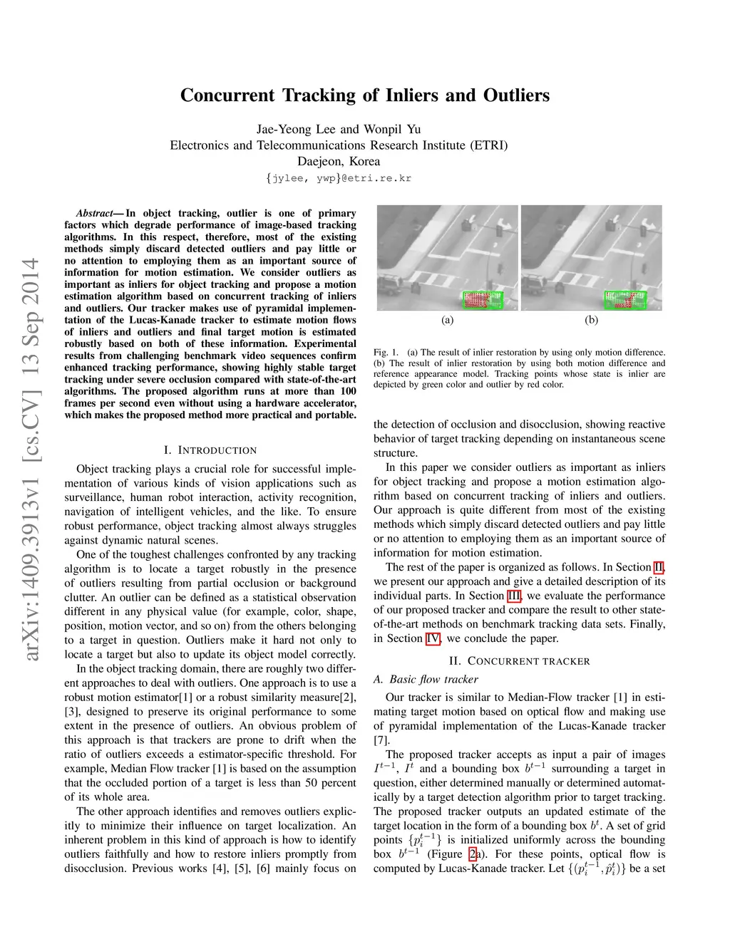 In object tracking, outlier is one of primary factors which degrade performance of image-based tracking algorithms. In this respect, therefore, most of the existing methods simply discard detected outliers and pay little or no attention to employing them as an important source of information for motion estimation. We consider outliers as important as inliers for object tracking and propose a motion estimation algorithm based on concurrent tracking of inliers and outliers. Our tracker makes use of pyramidal implementation of the Lucas-Kanade tracker to estimate motion flows of inliers and outliers and final target motion is estimated robustly based on both of these information. Experimental results from challenging benchmark video sequences confirm enhanced tracking performance, showing highly stable target tracking under severe occlusion compared with state-of-the-art algorithms. The proposed algorithm runs at more than 100 frames per second even without using a hardware accelerator, which makes the proposed method more practical and portable.