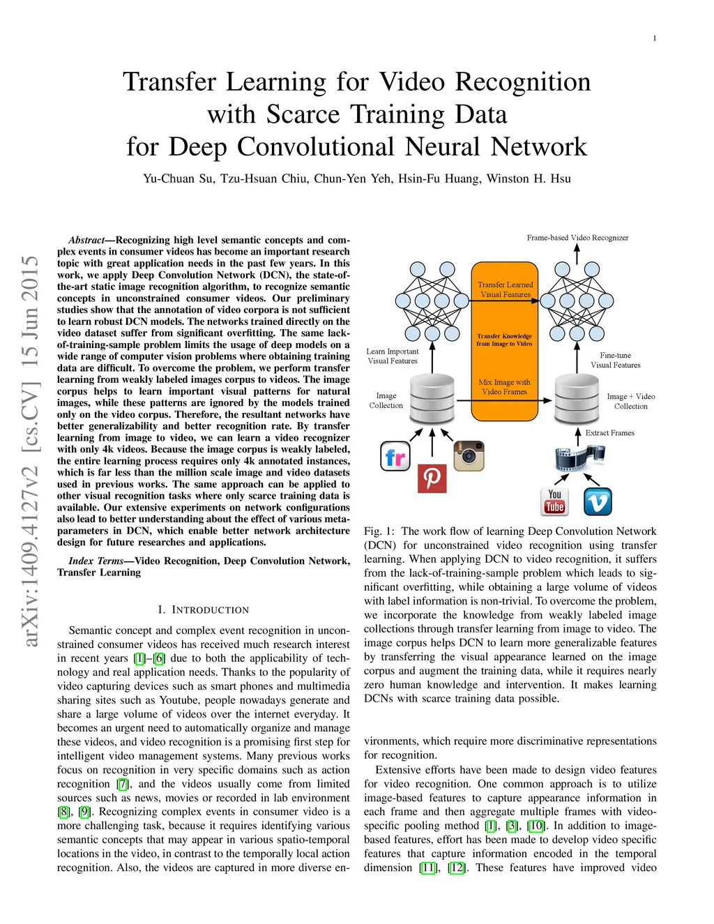 Transfer Learning for Video Recognition with Scarce Training Data for