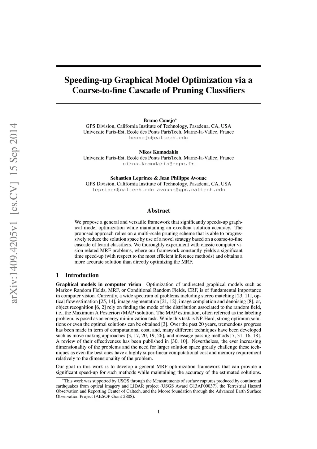 Speeding-up Graphical Model Optimization via a Coarse-to-fine Cascade of