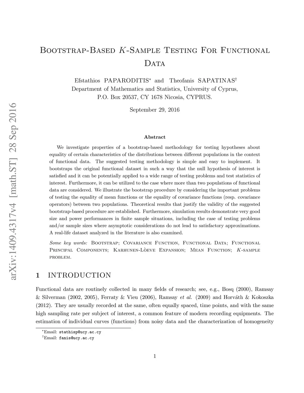Bootstrap-Based K-Sample Testing For Functional Data