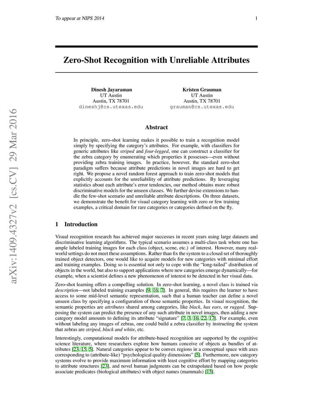 Zero Shot Recognition with Unreliable Attributes