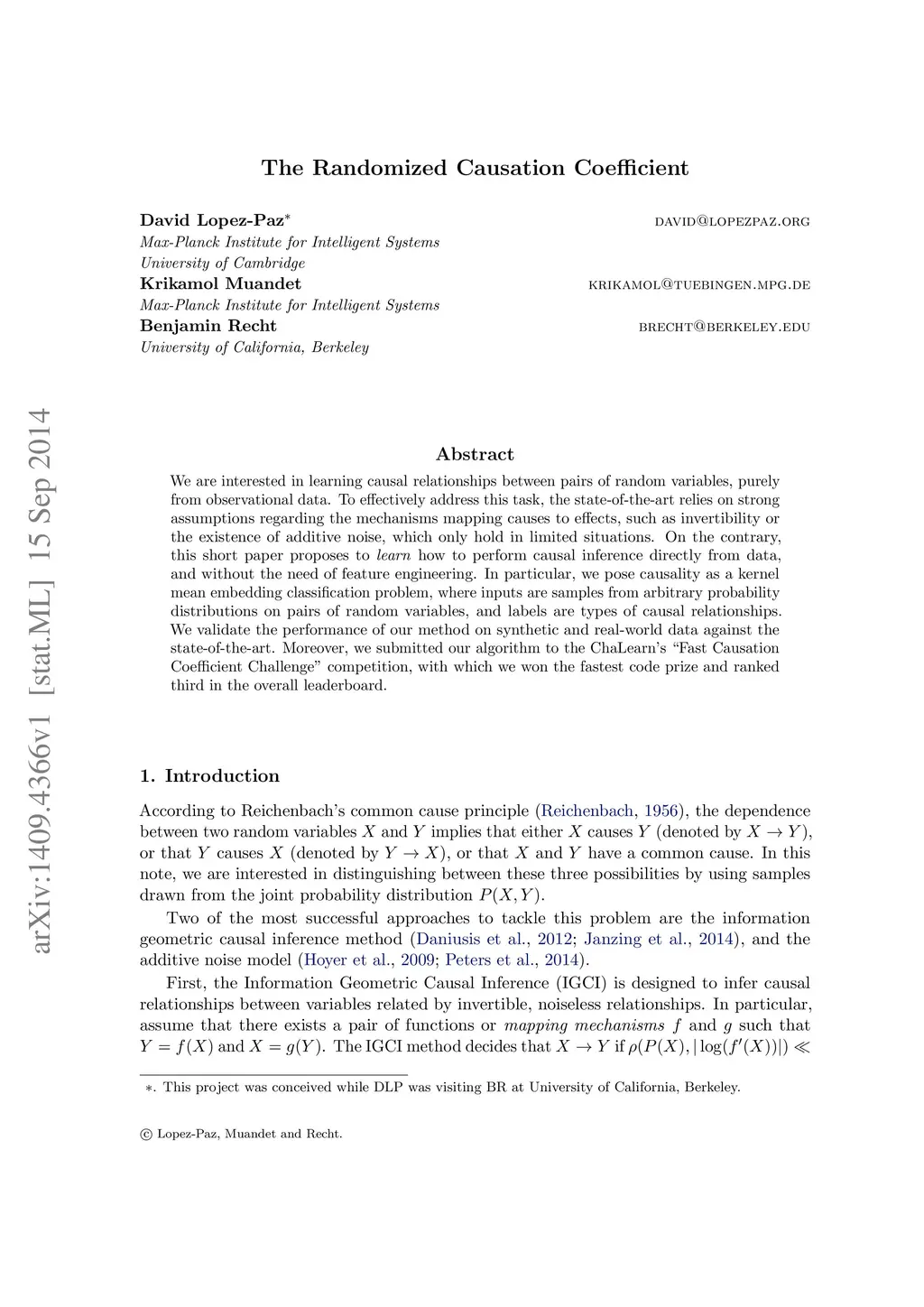 The Randomized Causation Coefficient