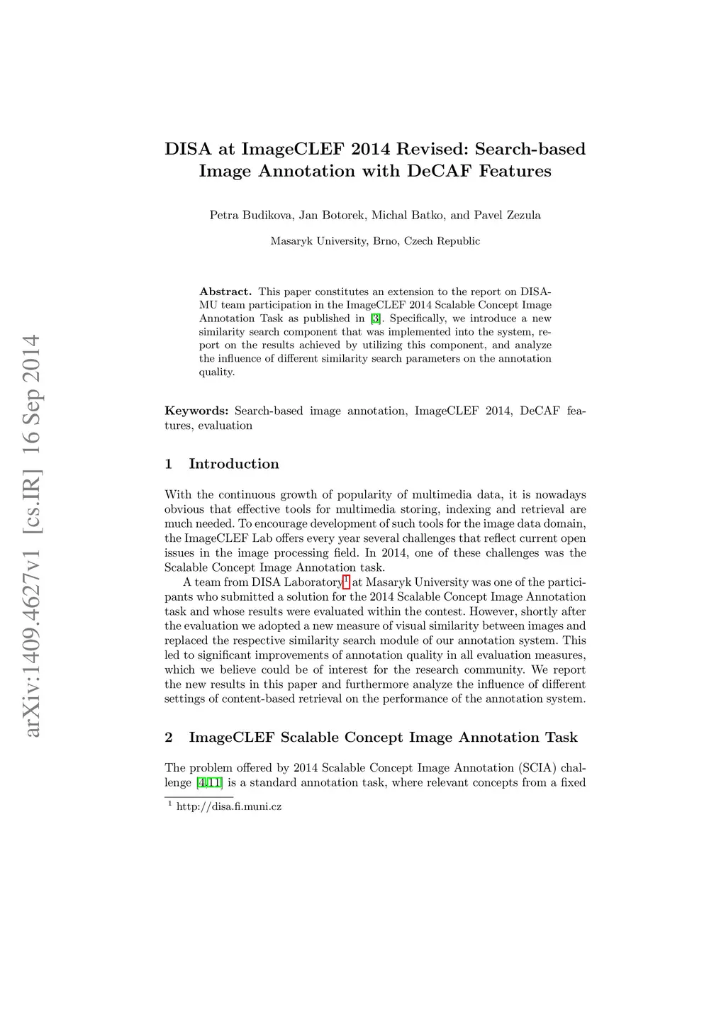 DISA at ImageCLEF 2014 Revised: Search-based Image Annotation with DeCAF
