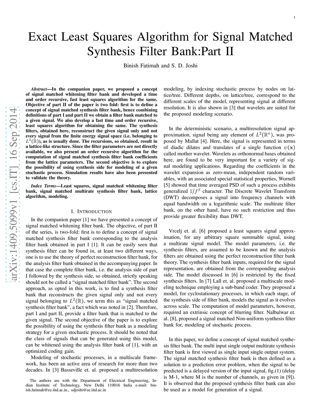 In the companion paper, we proposed a concept of signal matched whitening filter bank and developed a time and order recursive, fast least squares algorithm for the same. Objective of part II of the paper is two fold: first is to define a concept of signal matched synthesis filter bank, hence combining definitions of part I and part II we obtain a filter bank matched to a given signal. We also develop a fast time and order recursive, least squares algorithm for obtaining the same. The synthesis filters, obtained here, reconstruct the given signal only and not every signal from the finite energy signal space (i.e. belonging to L^2(R)), as is usually done. The recursions, so obtained, result in a lattice-like structure. Since the filter parameters are not directly available, we also present an order recursive algorithm for the computation of signal matched synthesis filter bank coefficients from the lattice parameters. The second objective is to explore the possibility of using synthesis side for modeling of a given stochastic process. Simulation results have also been presented to validate the theory.