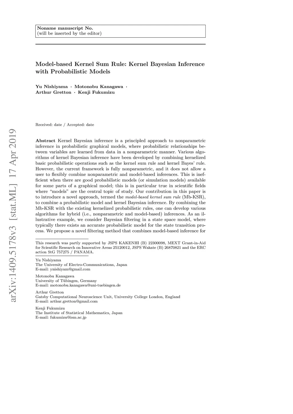 Model-based Kernel Sum Rule: Kernel Bayesian Inference with