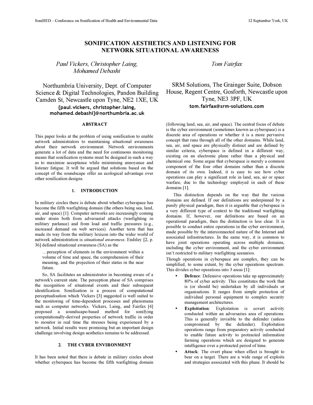 Sonification Aesthetics and Listening for Network Situational Awareness