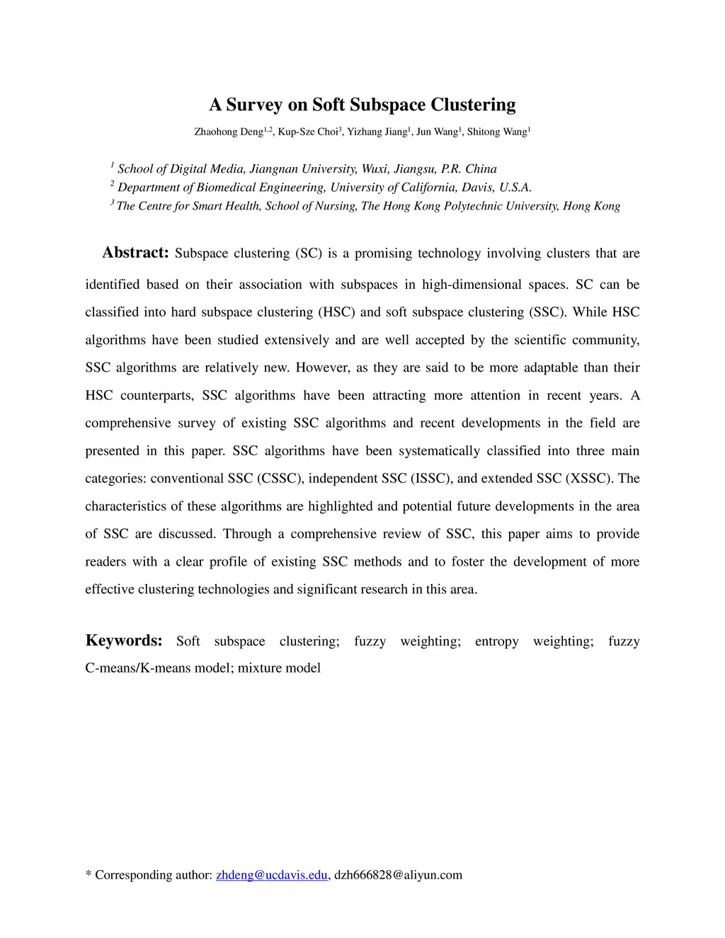 A Survey on Soft Subspace Clustering