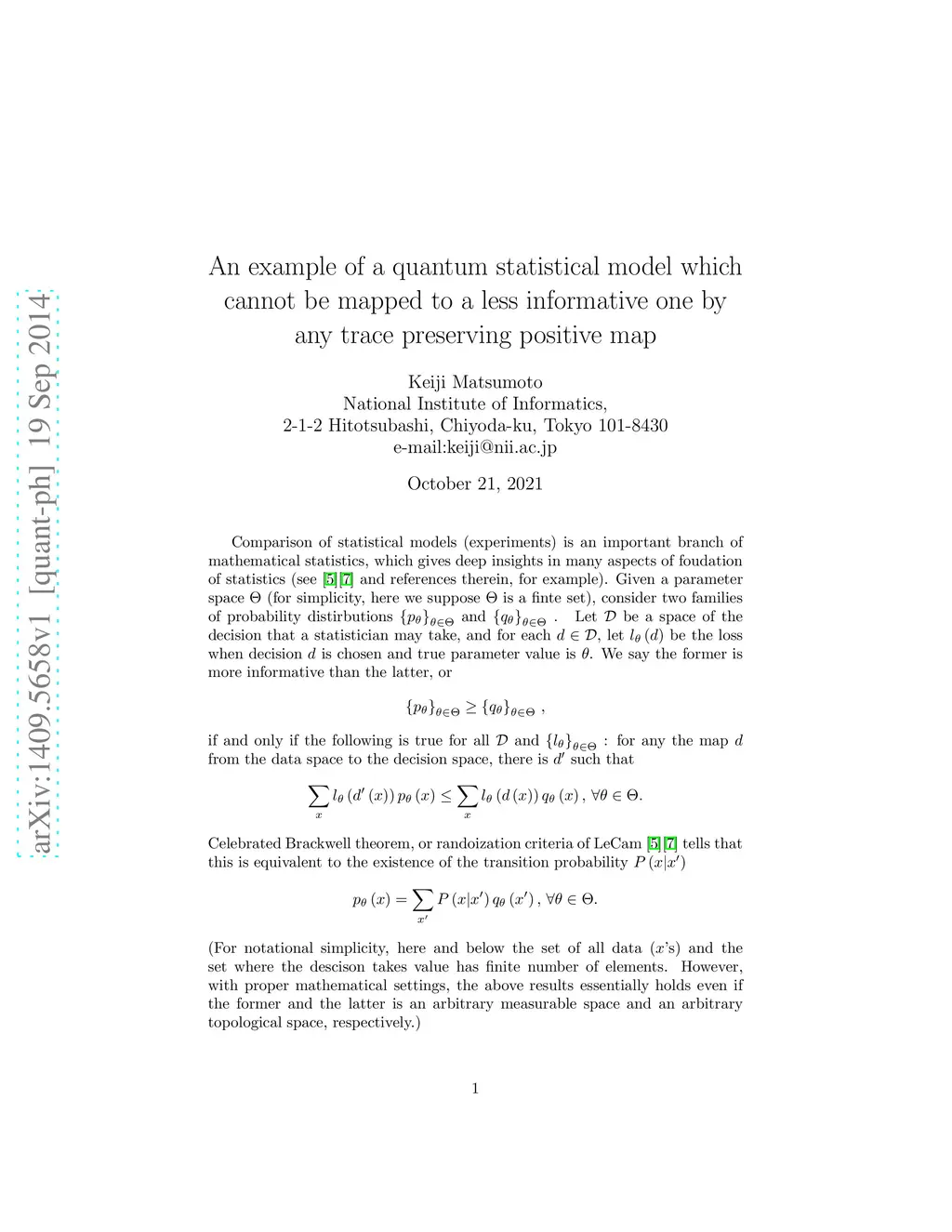 Comparison of statistical models (experiments) is an important branch of mathematical statistics, which gives deep insights in many aspects of foundation of statistics. So far, there are two quantum versions of the concept: Comparison with respect to classical tasks and full quantum tasks. In the latter version, a quantum statistical model is more informative than another if and only if a trace preserving positive map sends the former to the latter. On the other hand, in the former version, the existence of a trace preserving positive map sending the former to the latter is a useful sufficient condition. A natural question is whether this is necessary or not. We resolve this question negatively by giving a counter example.