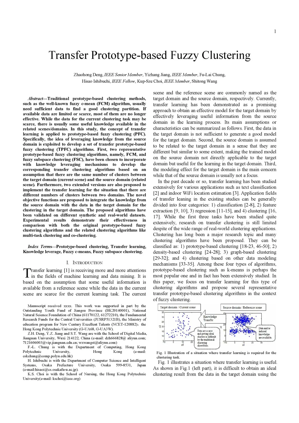 The traditional prototype based clustering methods, such as the well-known fuzzy c-mean (FCM) algorithm, usually need sufficient data to find a good clustering partition. If the available data is limited or scarce, most of the existing prototype based clustering algorithms will no longer be effective. While the data for the current clustering task may be scarce, there is usually some useful knowledge available in the related scenes/domains. In this study, the concept of transfer learning is applied to prototype based fuzzy clustering (PFC). Specifically, the idea of leveraging knowledge from the source domain is exploited to develop a set of transfer prototype based fuzzy clustering (TPFC) algorithms. Three prototype based fuzzy clustering algorithms, namely, FCM, fuzzy k-plane clustering (FKPC) and fuzzy subspace clustering (FSC), have been chosen to incorporate with knowledge leveraging mechanism to develop the corresponding transfer clustering algorithms. Novel objective functions are proposed to integrate the knowledge of source domain with the data of target domain for clustering in the target domain. The proposed algorithms have been validated on different synthetic and real-world datasets and the results demonstrate their effectiveness when compared with both the original prototype based fuzzy clustering algorithms and the related clustering algorithms like multi-task clustering and co-clustering.
