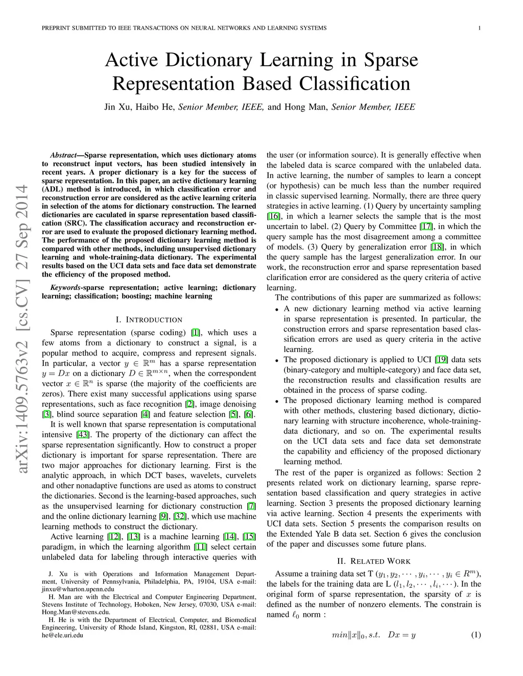 Active Dictionary Learning in Sparse Representation Based Classification