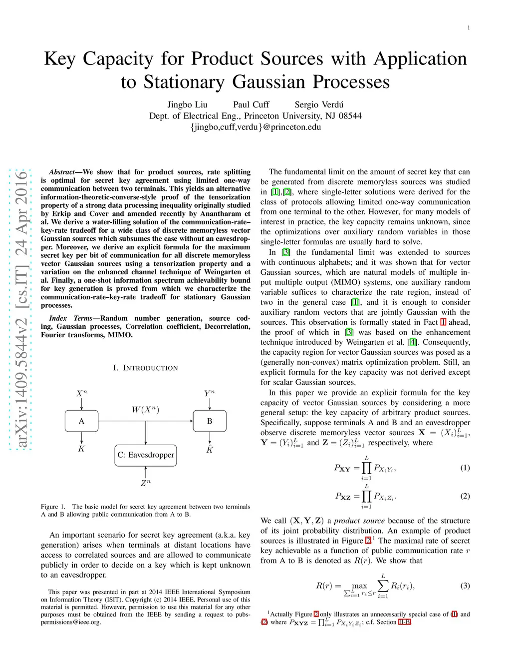 Key Capacity for Product Sources with Application to Stationary Gaussian