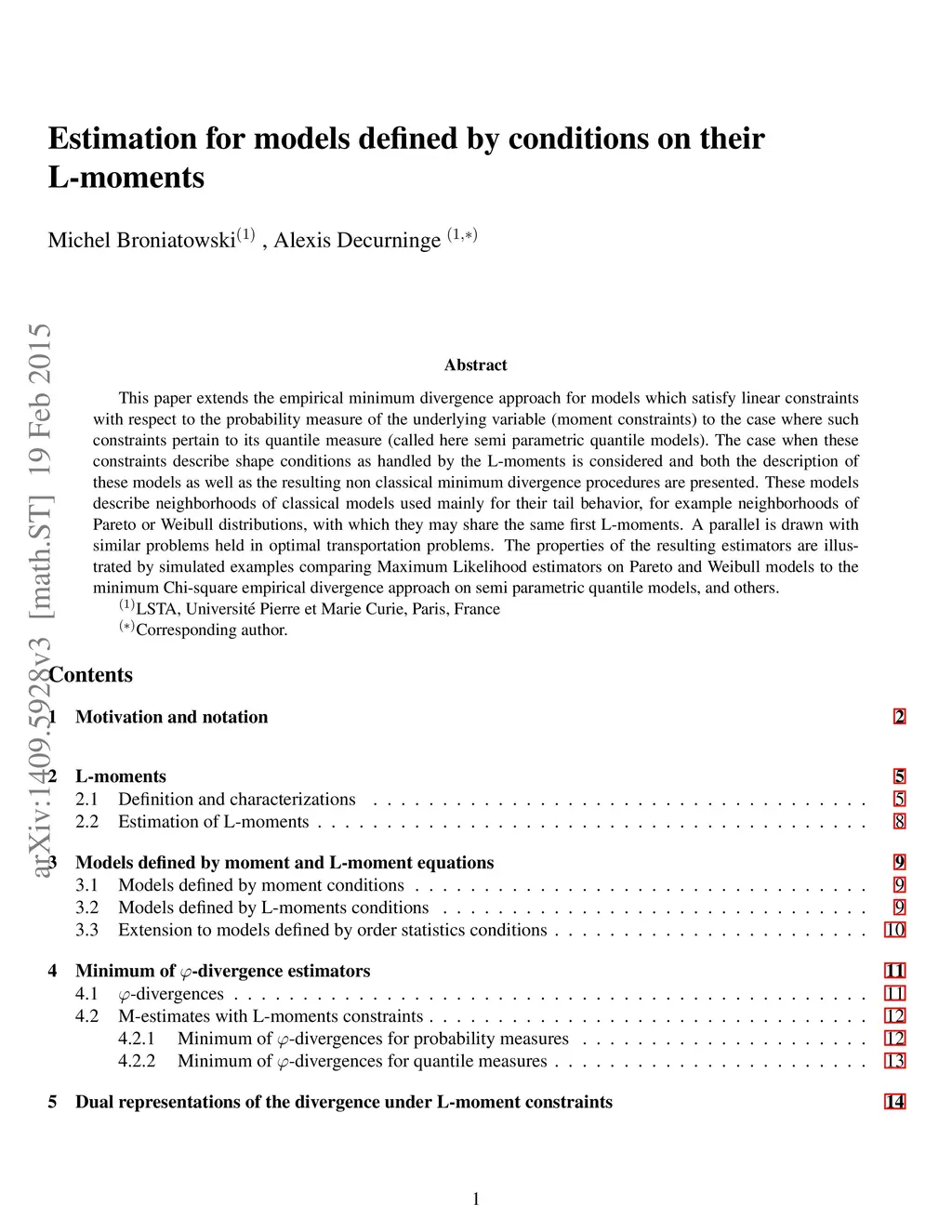 Estimation for models defined by conditions on their L-moments