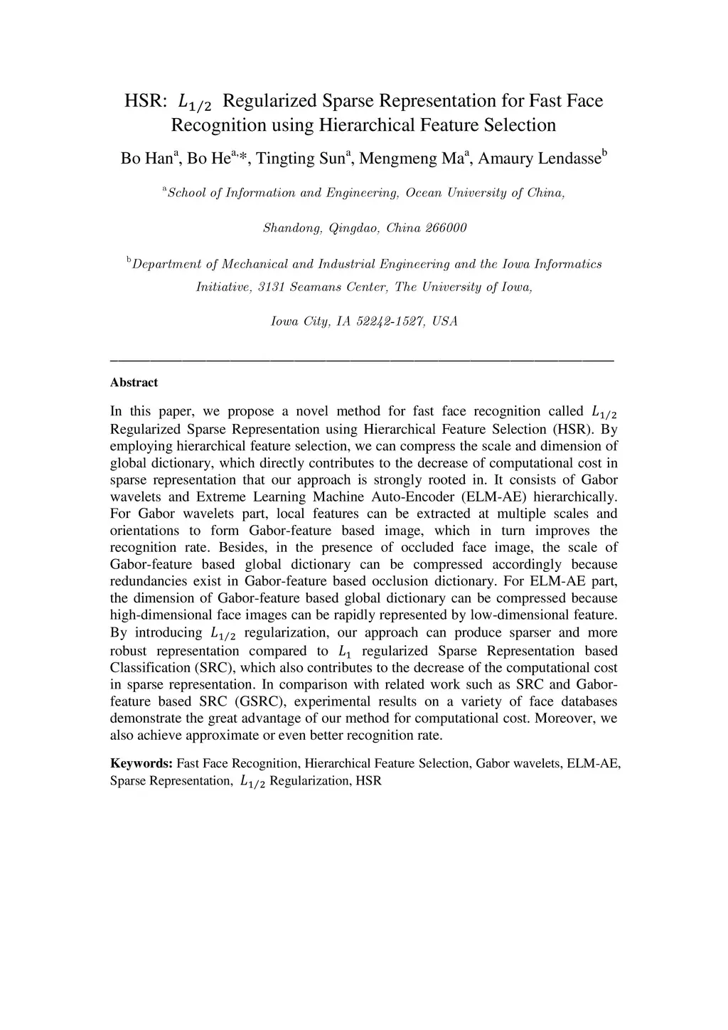 HSR: L1/2 Regularized Sparse Representation for Fast Face Recognition