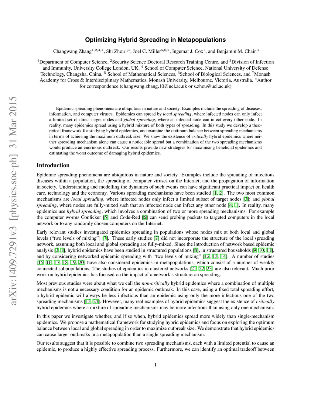 Epidemic spreading phenomena are ubiquitous in nature and society. Examples include the spreading of diseases, information, and computer viruses. Epidemics can spread by local spreading, where infected nodes can only infect a limited set of direct target nodes and global spreading, where an infected node can infect every other node. In reality, many epidemics spread using a hybrid mixture of both types of spreading. In this study we develop a theoretical framework for studying hybrid epidemics, and examine the optimum balance between spreading mechanisms in terms of achieving the maximum outbreak size. We show the existence of critically hybrid epidemics where neither spreading mechanism alone can cause a noticeable spread but a combination of the two spreading mechanisms would produce an enormous outbreak. Our results provide new strategies for maximising beneficial epidemics and estimating the worst outcome of damaging hybrid epidemics.