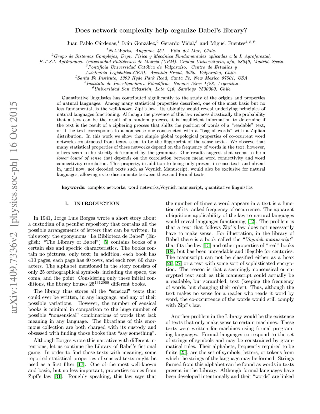 Does network complexity help organize Babel's library?