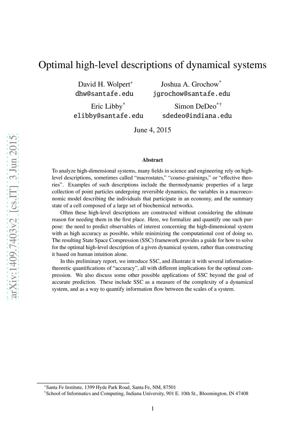 To analyze high-dimensional systems, many fields in science and engineering rely on high-level descriptions, sometimes called "macrostates," "coarse-grainings," or "effective theories". Examples of such descriptions include the thermodynamic properties of a large collection of point particles undergoing reversible dynamics, the variables in a macroeconomic model describing the individuals that participate in an economy, and the summary state of a cell composed of a large set of biochemical networks. Often these high-level descriptions are constructed without considering the ultimate reason for needing them in the first place. Here, we formalize and quantify one such purpose: the need to predict observables of interest concerning the high-dimensional system with as high accuracy as possible, while minimizing the computational cost of doing so. The resulting State Space Compression (SSC) framework provides a guide for how to solve for the {optimal} high-level description of a given dynamical system, rather than constructing it based on human intuition alone. In this preliminary report, we introduce SSC, and illustrate it with several information-theoretic quantifications of "accuracy", all with different implications for the optimal compression. We also discuss some other possible applications of SSC beyond the goal of accurate prediction. These include SSC as a measure of the complexity of a dynamical system, and as a way to quantify information flow between the scales of a system.