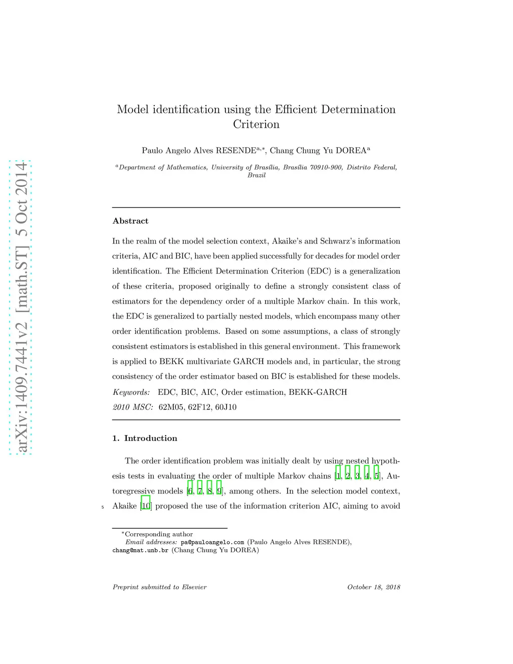 Model identification using the Efficient Determination Criterion