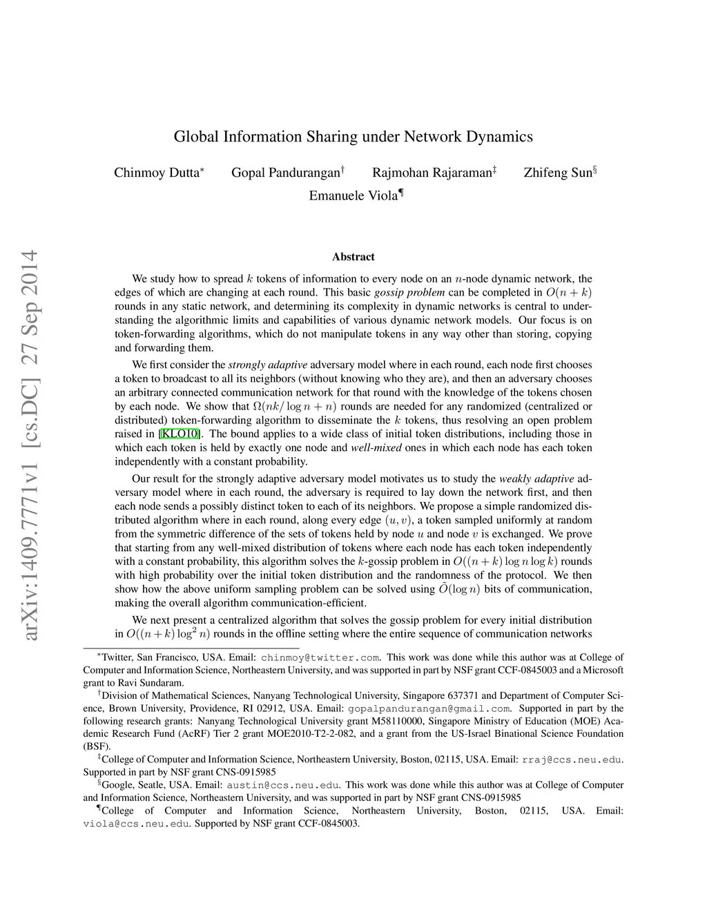 We study how to spread tokens of information to every node on an -node dynamic network, the edges of which are changing at each round. This basic {\em gossip problem} can be completed in rounds in any static network, and determining its complexity in dynamic networks is central to understanding the algorithmic limits and capabilities of various dynamic network models. Our focus is on token-forwarding algorithms, which do not manipulate tokens in any way other than storing, copying and forwarding them. We first consider the {\em strongly adaptive} adversary model where in each round, each node first chooses a token to broadcast to all its neighbors (without knowing who they are), and then an adversary chooses an arbitrary connected communication network for that round with the knowledge of the tokens chosen by each node. We show that rounds are needed for any randomized (centralized or distributed) token-forwarding algorithm to disseminate the tokens, thus resolving an open problem raised in~\cite{kuhn+lo:dynamic}. The bound applies to a wide class of initial token distributions, including those in which each token is held by exactly one node and {\em well-mixed} ones in which each node has each token independently with a constant probability. We also show several upper bounds in varying models.