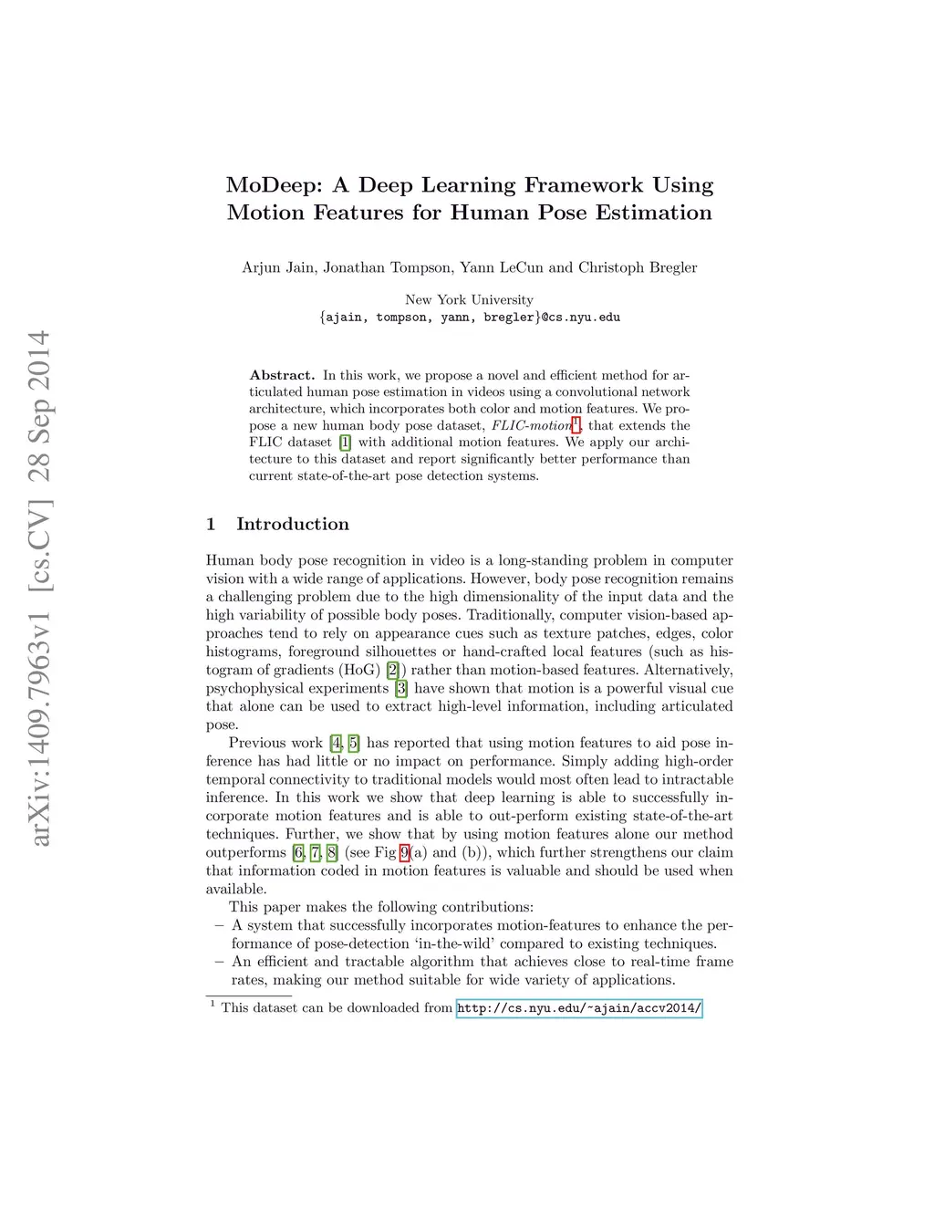 MoDeep: A Deep Learning Framework Using Motion Features for Human Pose