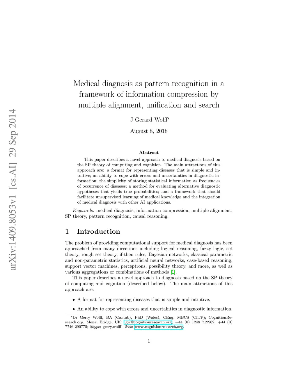 This paper describes a novel approach to medical diagnosis based on the SP theory of computing and cognition. The main attractions of this approach are: a format for representing diseases that is simple and intuitive; an ability to cope with errors and uncertainties in diagnostic information; the simplicity of storing statistical information as frequencies of occurrence of diseases; a method for evaluating alternative diagnostic hypotheses that yields true probabilities; and a framework that should facilitate unsupervised learning of medical knowledge and the integration of medical diagnosis with other AI applications.