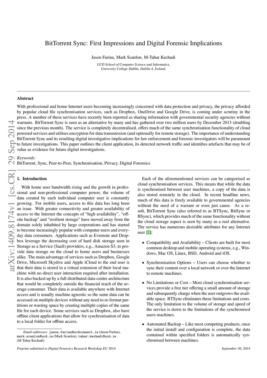 BitTorrent Sync: First Impressions and Digital Forensic Implications