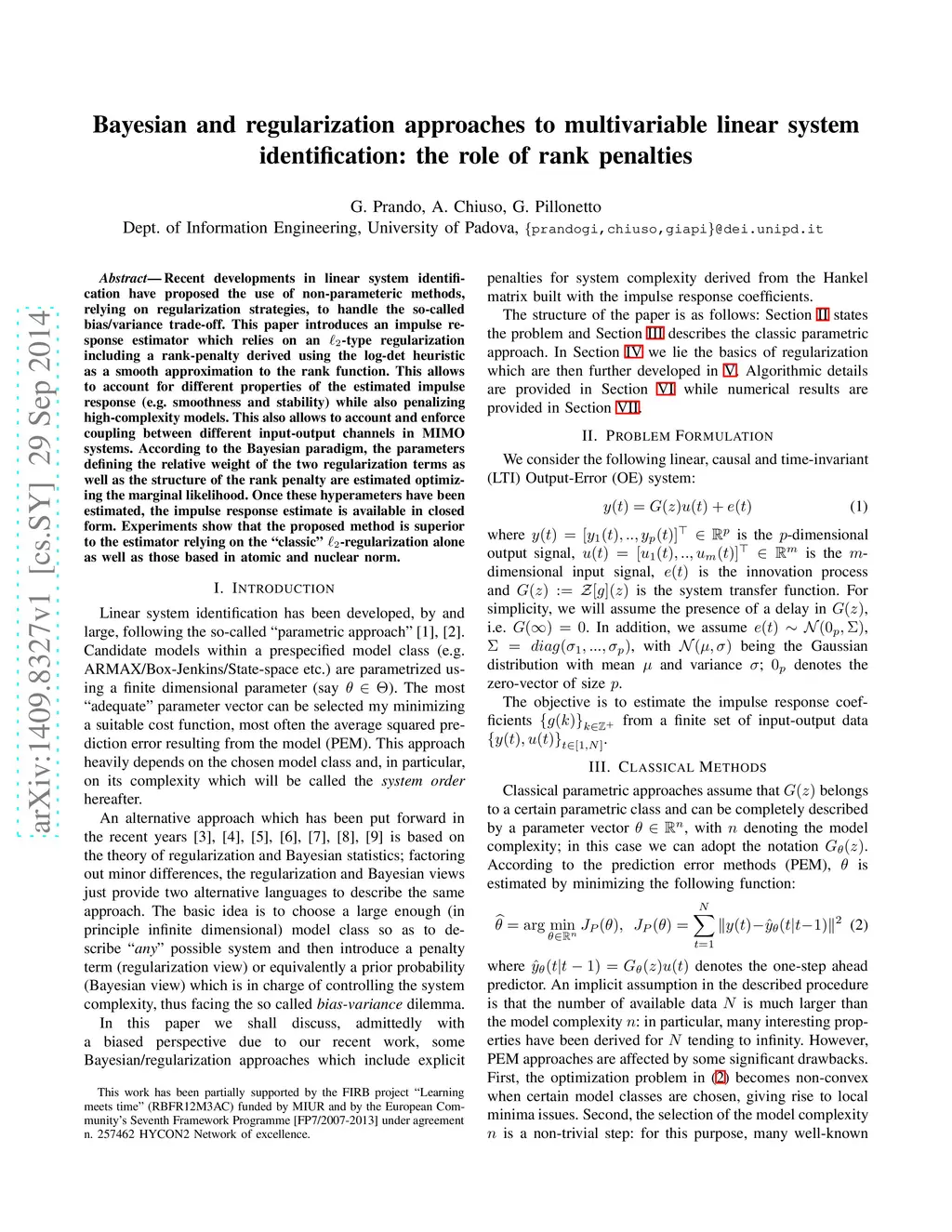 Bayesian and regularization approaches to multivariable linear system