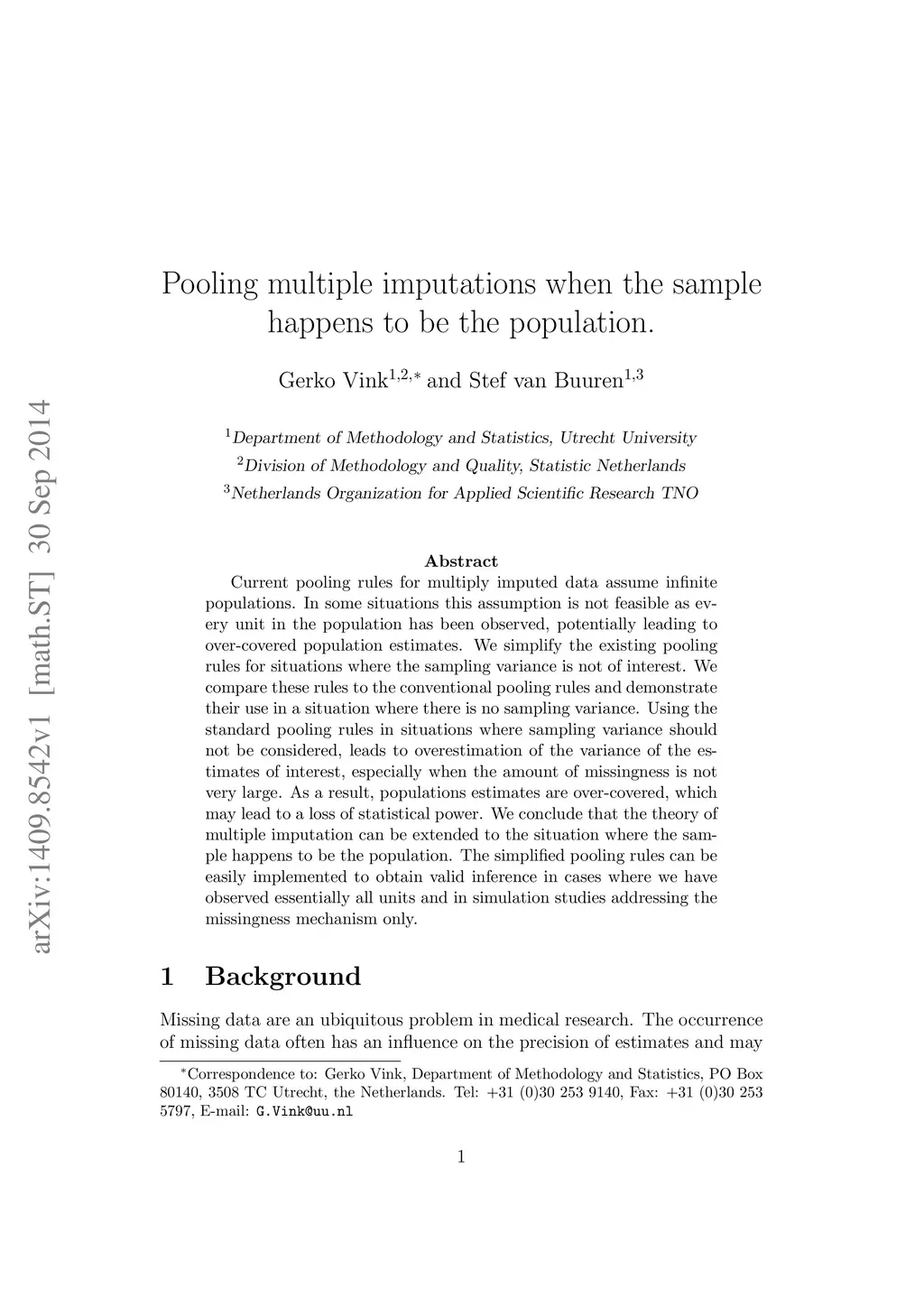 Current pooling rules for multiply imputed data assume infinite populations. In some situations this assumption is not feasible as every unit in the population has been observed, potentially leading to over-covered population estimates. We simplify the existing pooling rules for situations where the sampling variance is not of interest. We compare these rules to the conventional pooling rules and demonstrate their use in a situation where there is no sampling variance. Using the standard pooling rules in situations where sampling variance should not be considered, leads to overestimation of the variance of the estimates of interest, especially when the amount of missingness is not very large. As a result, populations estimates are over-covered, which may lead to a loss of statistical power. We conclude that the theory of multiple imputation can be extended to the situation where the sample happens to be the population. The simplified pooling rules can be easily implemented to obtain valid inference in cases where we have observed essentially all units and in simulation studies addressing the missingness mechanism only.