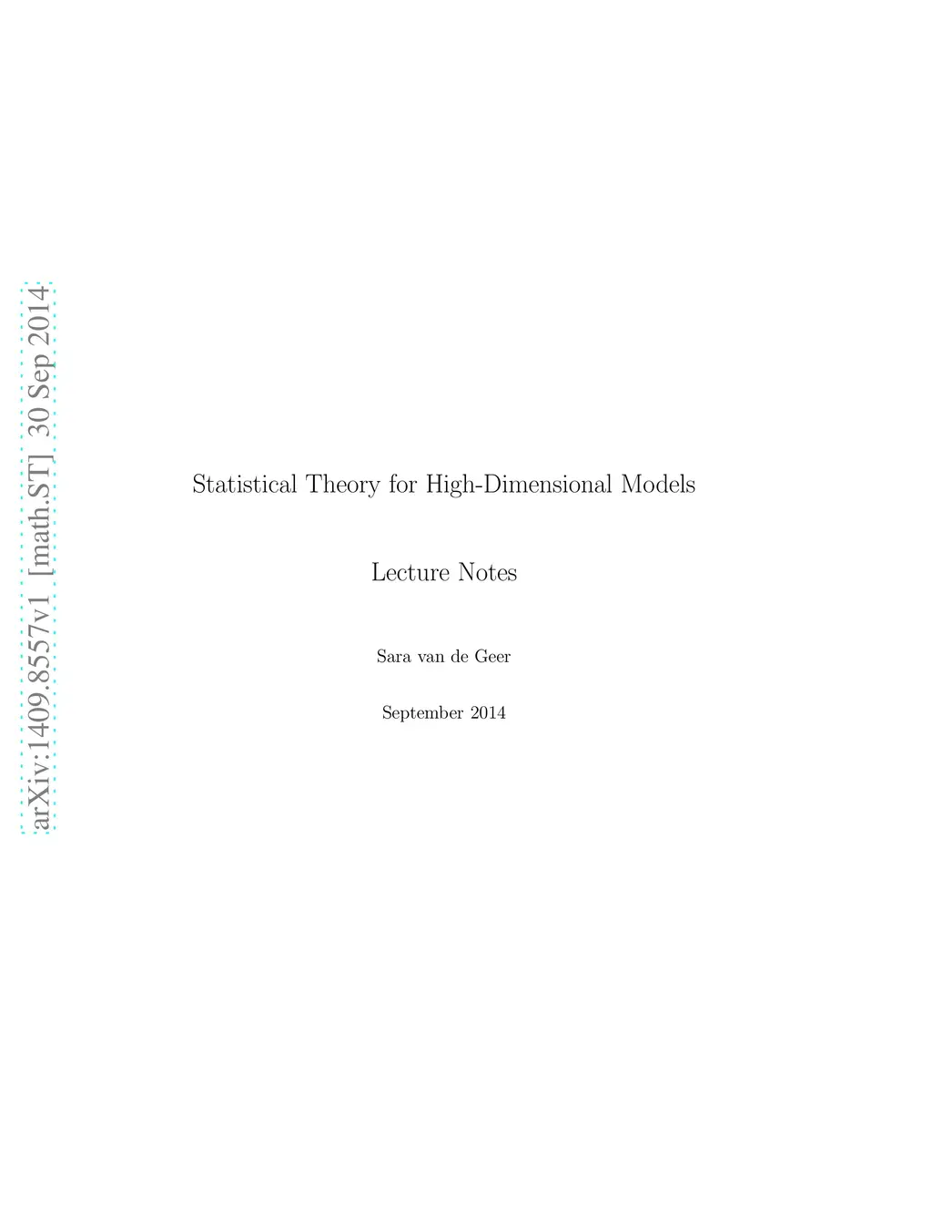 Statistical Theory for High-Dimensional Models