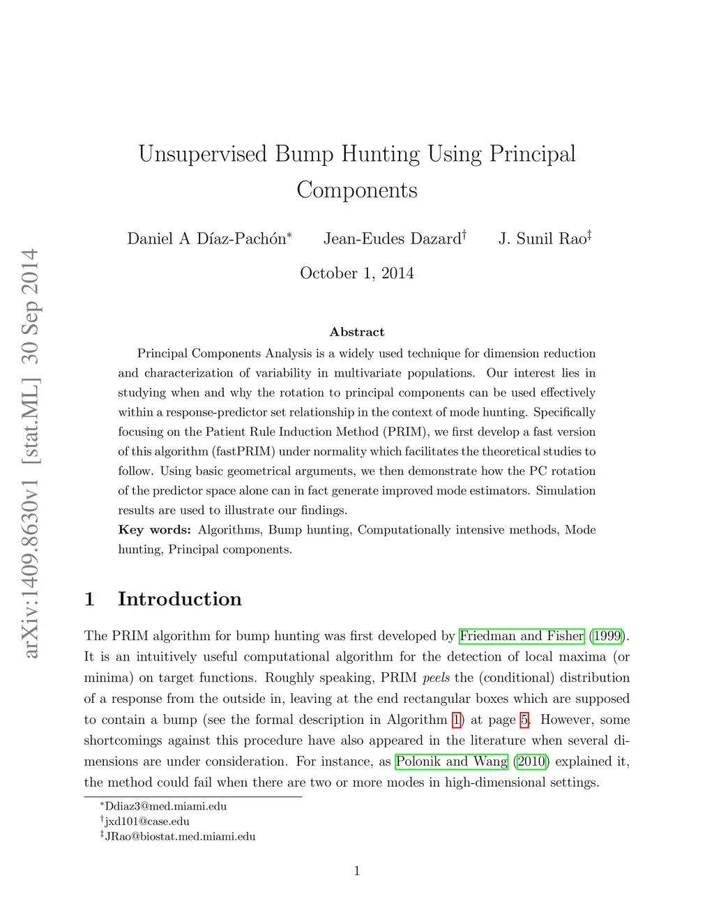Unsupervised Bump Hunting Using Principal Components