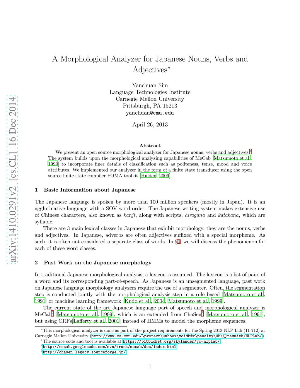 A Morphological Analyzer for Japanese Nouns, Verbs and Adjectives