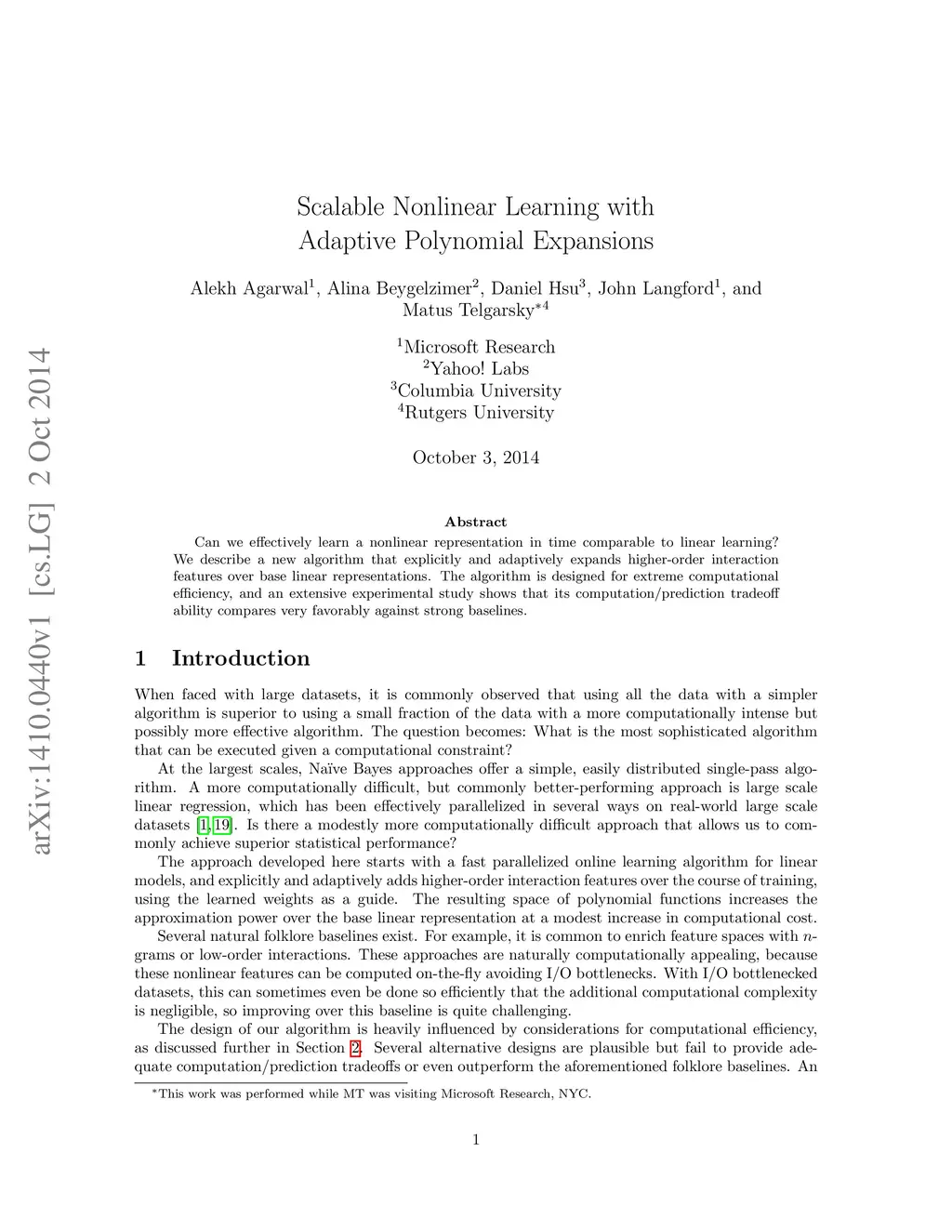 Scalable Nonlinear Learning with Adaptive Polynomial Expansions