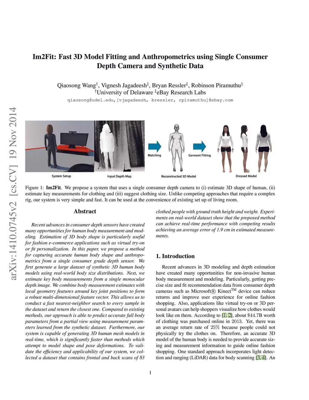 Im2Fit: Fast 3D Model Fitting and Anthropometrics using Single Consumer