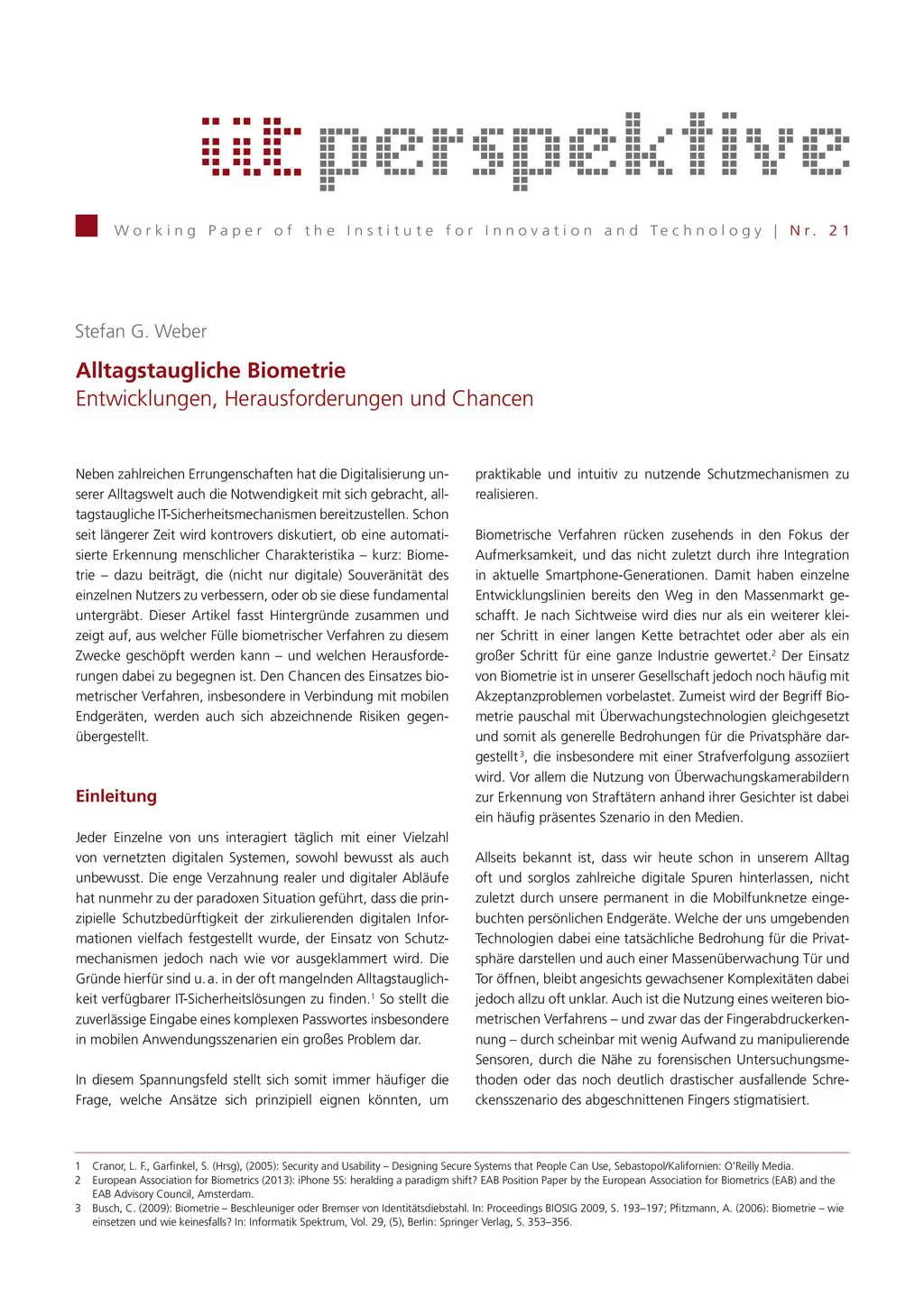 Alltagstaugliche Biometrie: Entwicklungen, Herausforderungen und Chancen