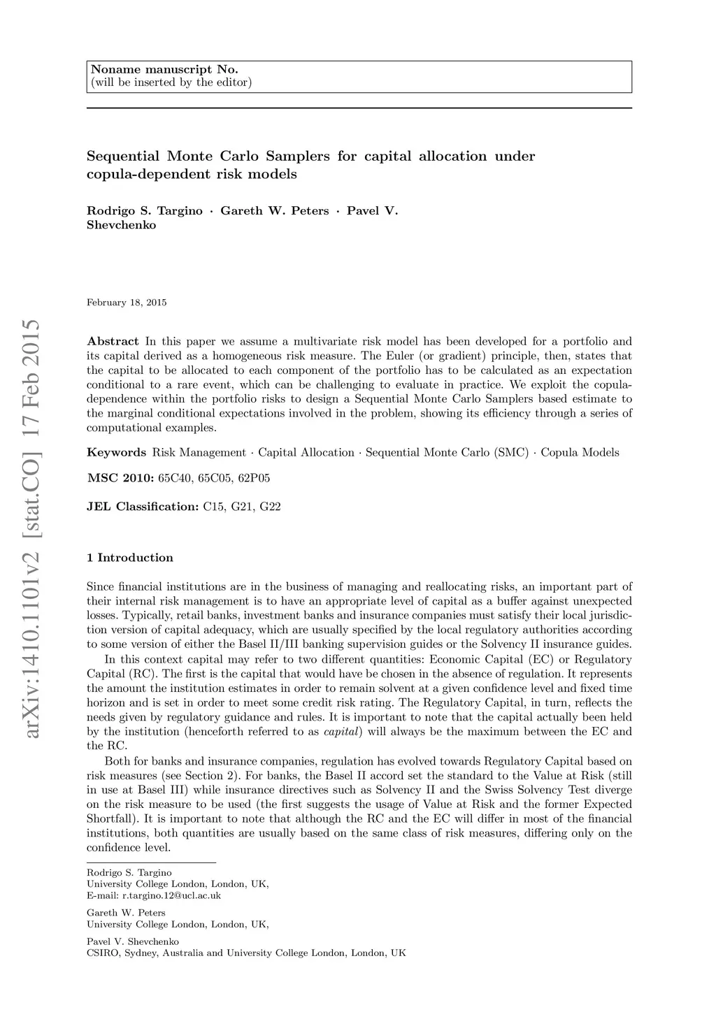 Sequential Monte Carlo Samplers for capital allocation under