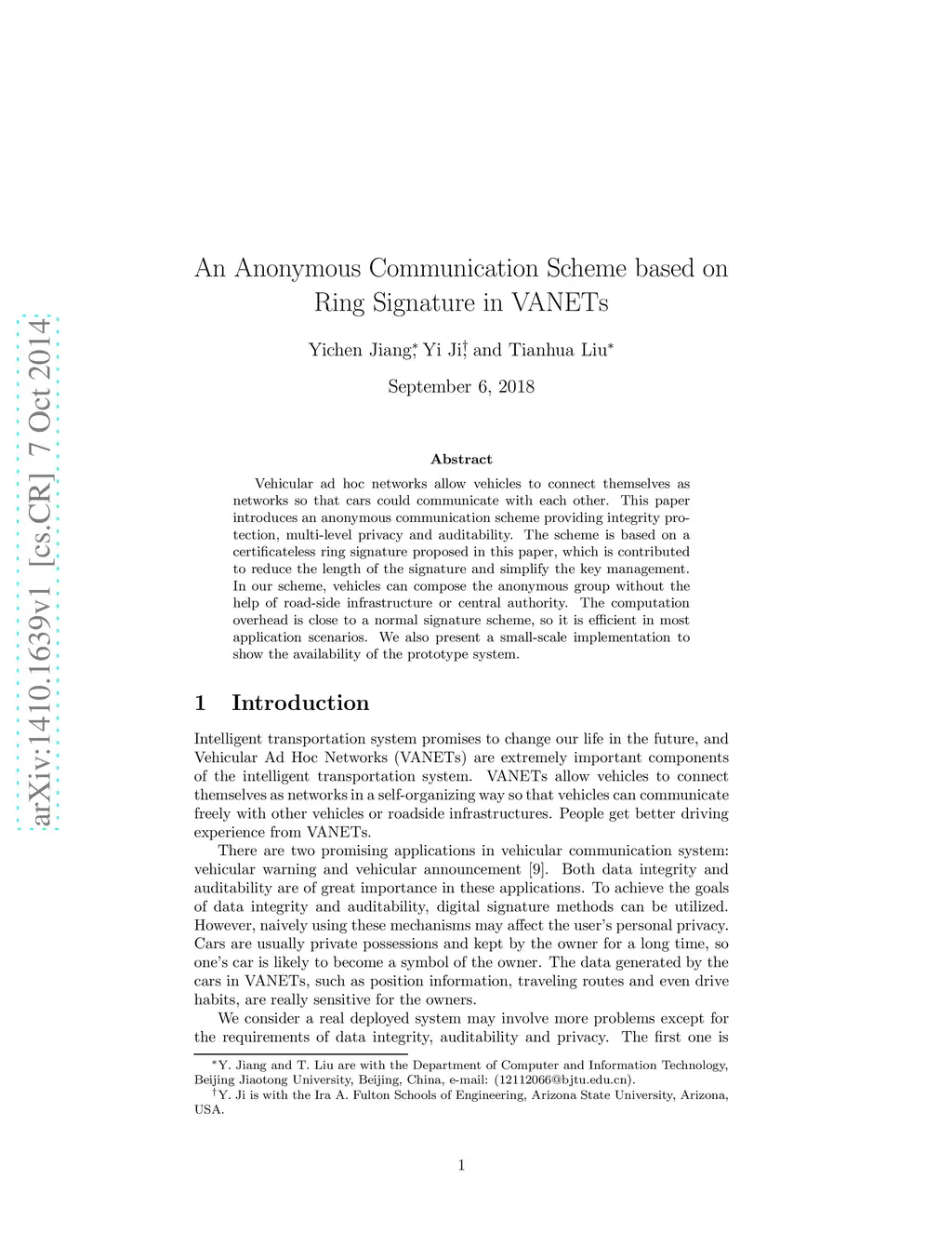 An Anonymous Communication Scheme based on Ring Signature in VANETs