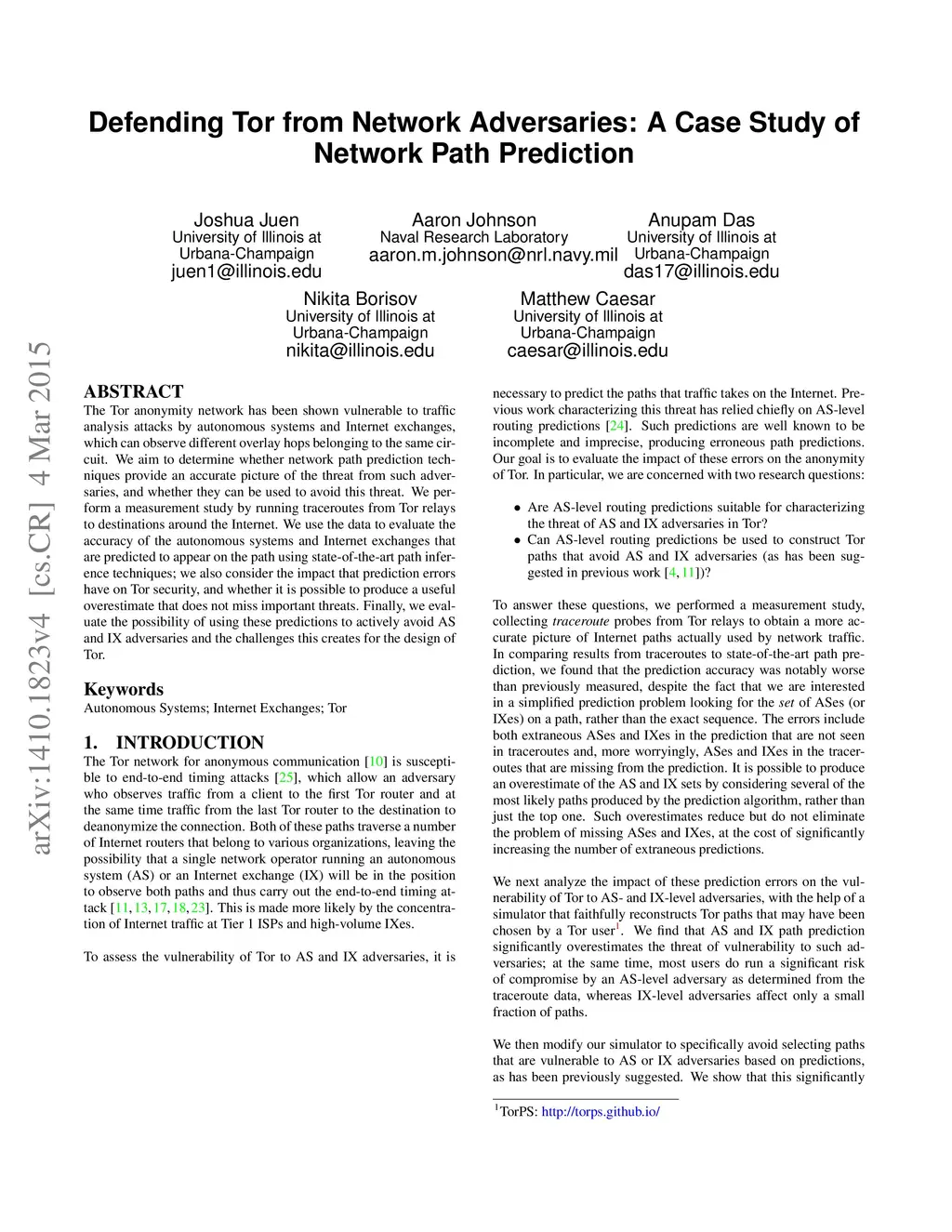 Defending Tor from Network Adversaries: A Case Study of Network Path