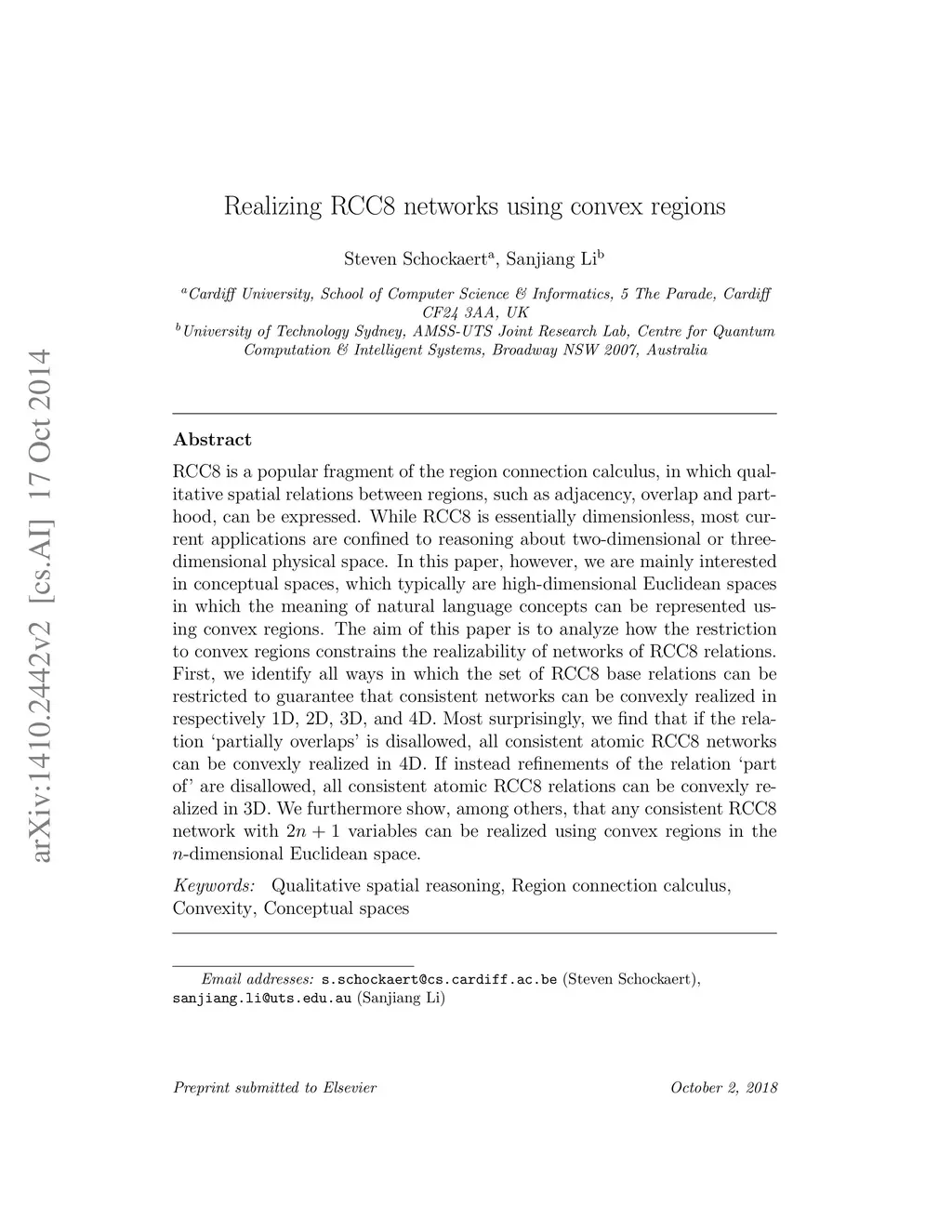 RCC8 is a popular fragment of the region connection calculus, in which qualitative spatial relations between regions, such as adjacency, overlap and parthood, can be expressed. While RCC8 is essentially dimensionless, most current applications are confined to reasoning about two-dimensional or three-dimensional physical space. In this paper, however, we are mainly interested in conceptual spaces, which typically are high-dimensional Euclidean spaces in which the meaning of natural language concepts can be represented using convex regions. The aim of this paper is to analyze how the restriction to convex regions constrains the realizability of networks of RCC8 relations. First, we identify all ways in which the set of RCC8 base relations can be restricted to guarantee that consistent networks can be convexly realized in respectively 1D, 2D, 3D, and 4D. Most surprisingly, we find that if the relation 'partially overlaps' is disallowed, all consistent atomic RCC8 networks can be convexly realized in 4D. If instead refinements of the relation 'part of' are disallowed, all consistent atomic RCC8 relations can be convexly realized in 3D. We furthermore show, among others, that any consistent RCC8 network with 2n+1 variables can be realized using convex regions in the n-dimensional Euclidean space.