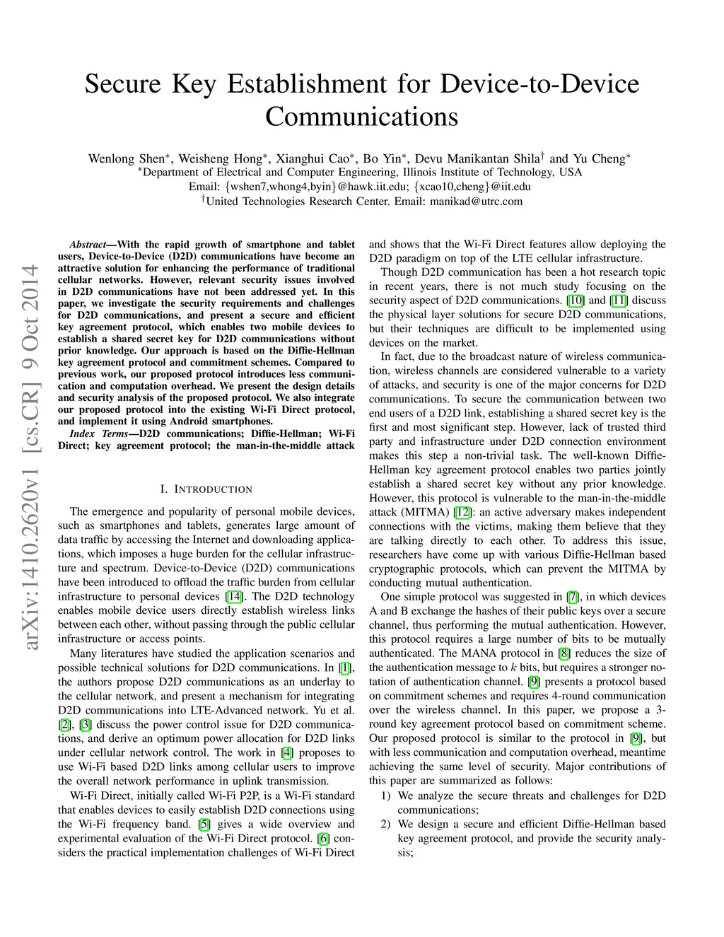 Secure Key Establishment for Device-to-Device Communications