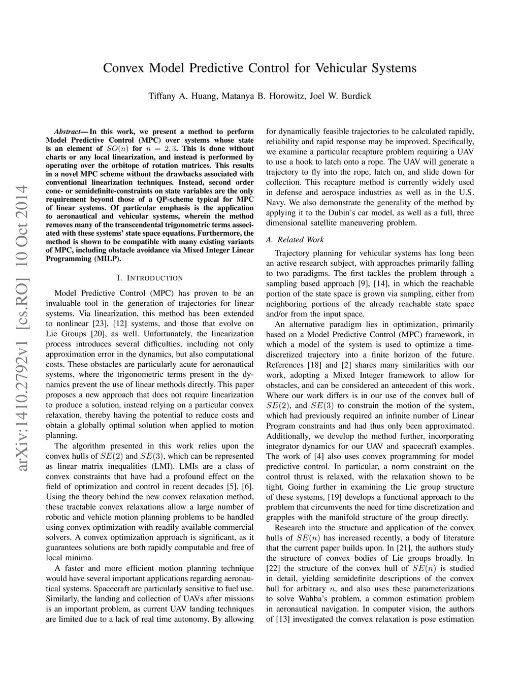 Convex Model Predictive Control for Vehicular Systems