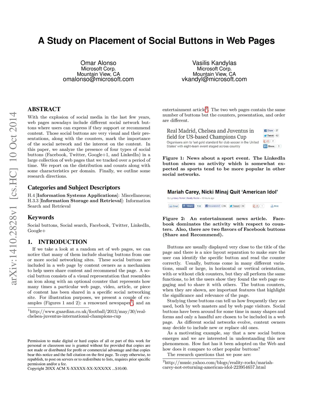 A Study on Placement of Social Buttons in Web Pages