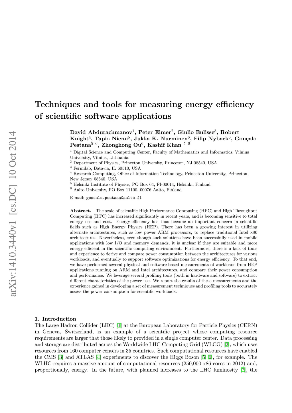Techniques and tools for measuring energy efficiency of scientific