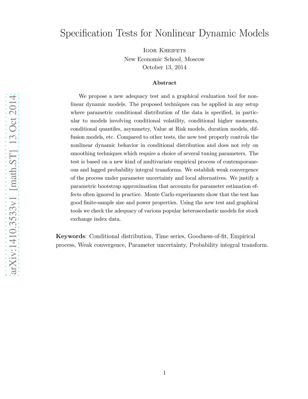 Specification tests for nonlinear dynamic models