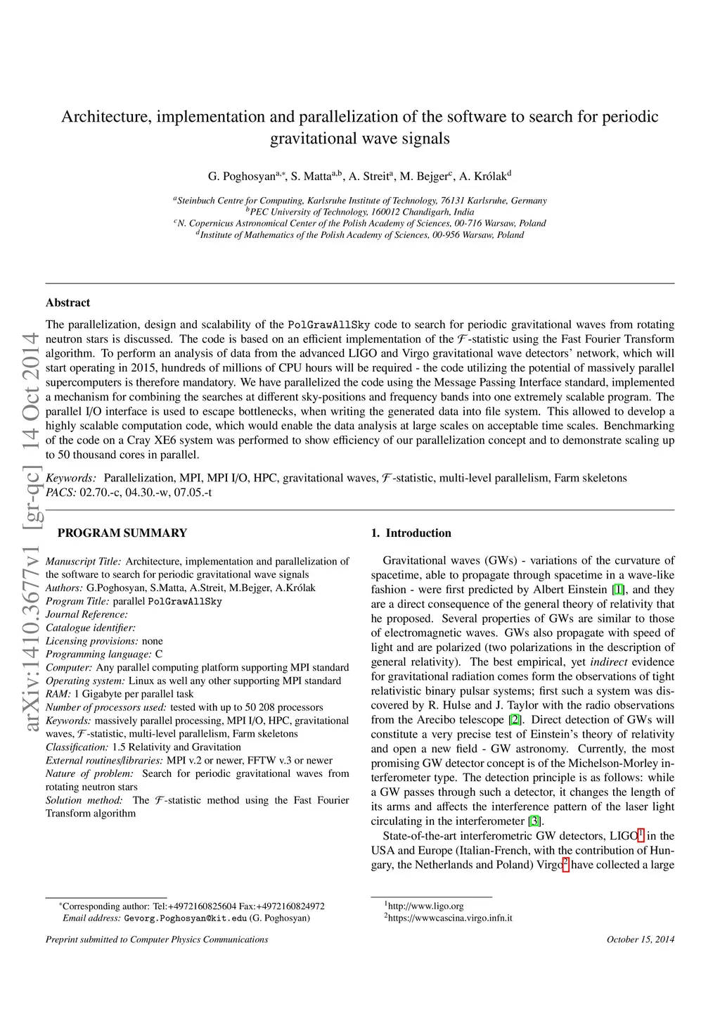 Architecture, implementation and parallelization of the software to