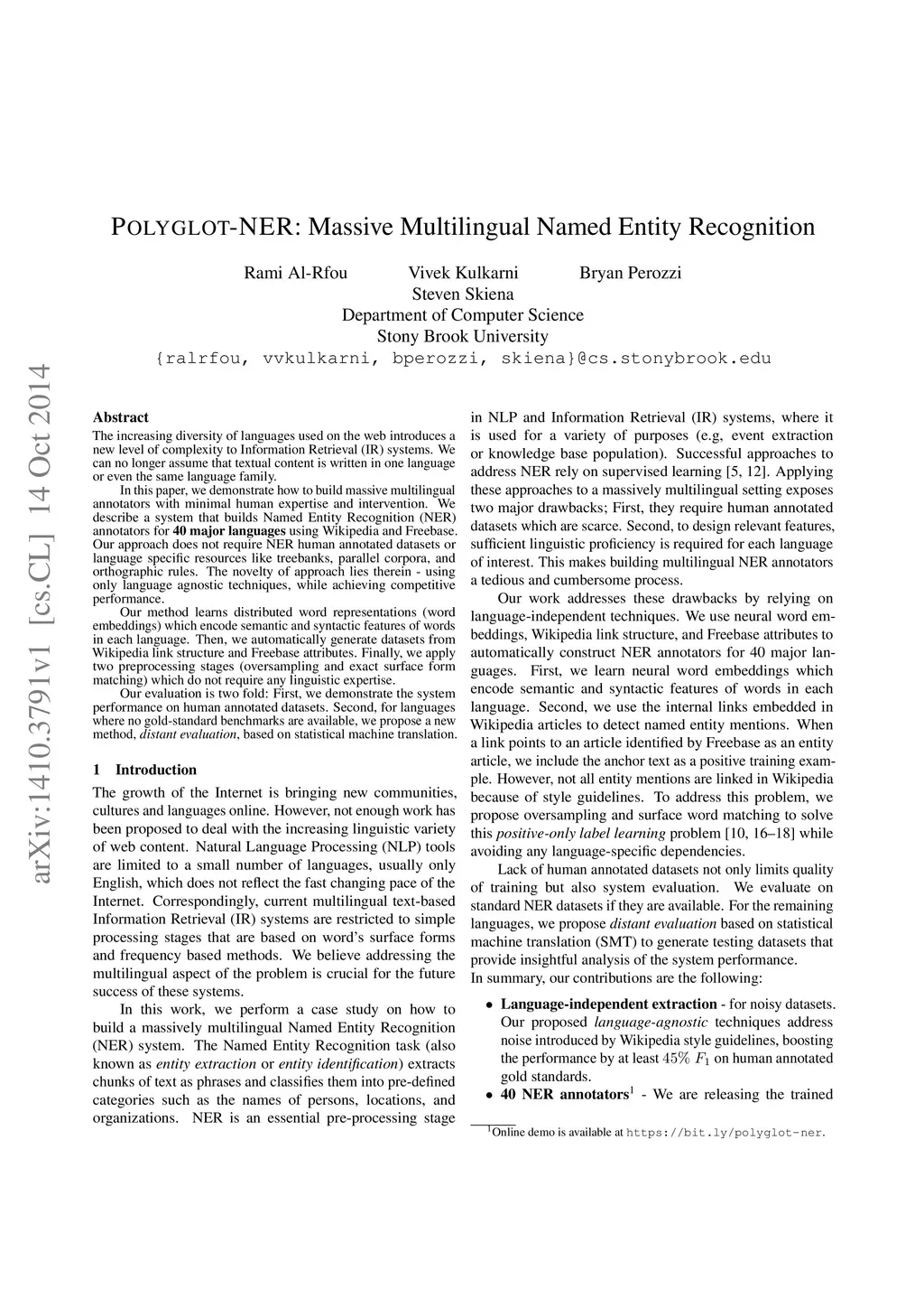 POLYGLOT-NER: Massive Multilingual Named Entity Recognition