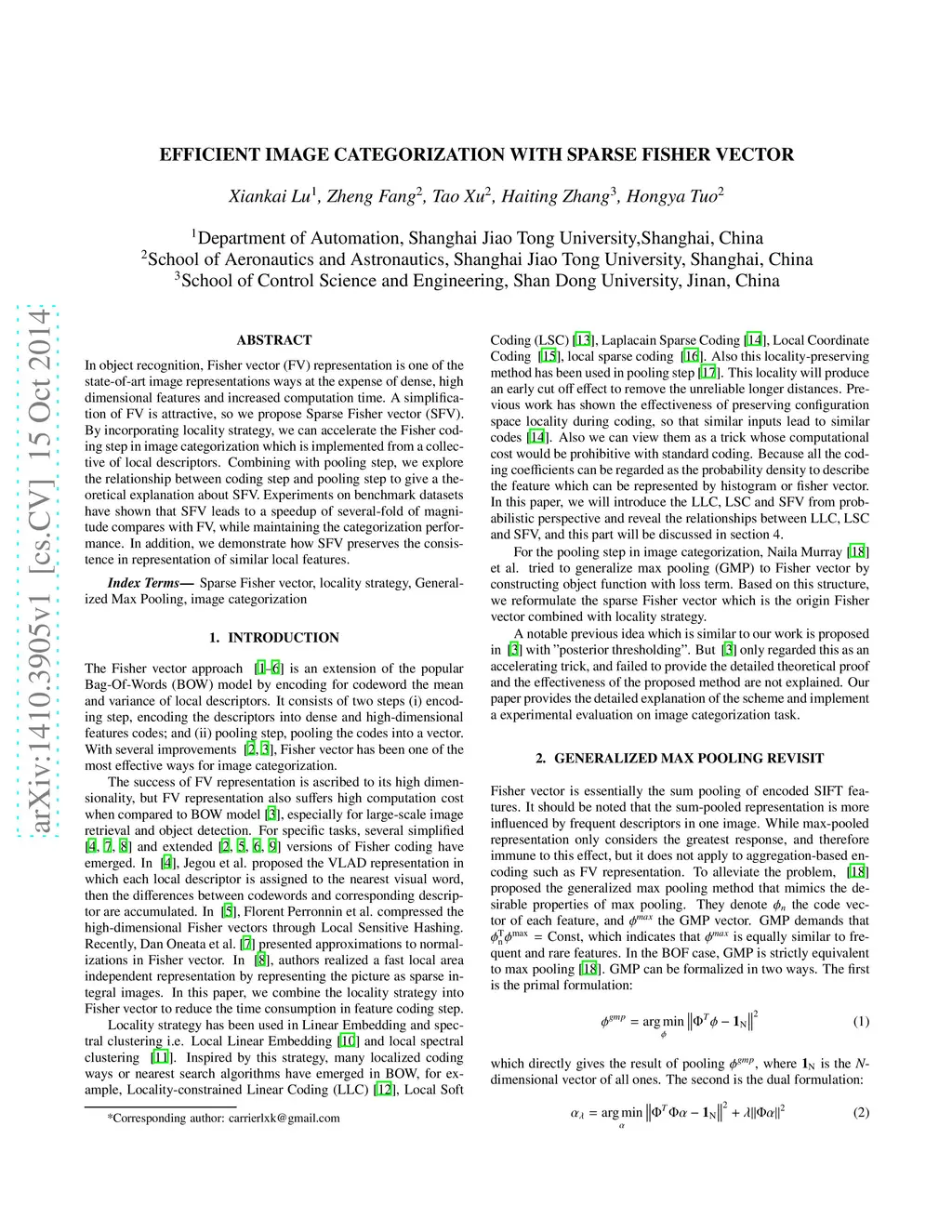 Efficient Image Categorization with Sparse Fisher Vector