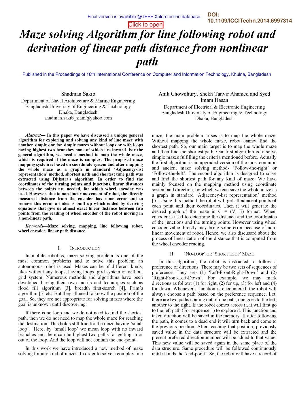 Maze solving Algorithm for line following robot and derivation of linear